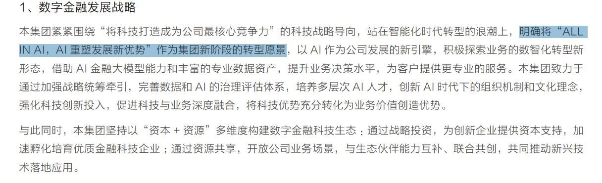 另外,华泰证券在2025年年报中也明确将“ALL IN AI,AI重塑发展新优势”作为集团新阶段的转型愿景,其CEO周易在致股东信中直言,AI重构是一道必答题。